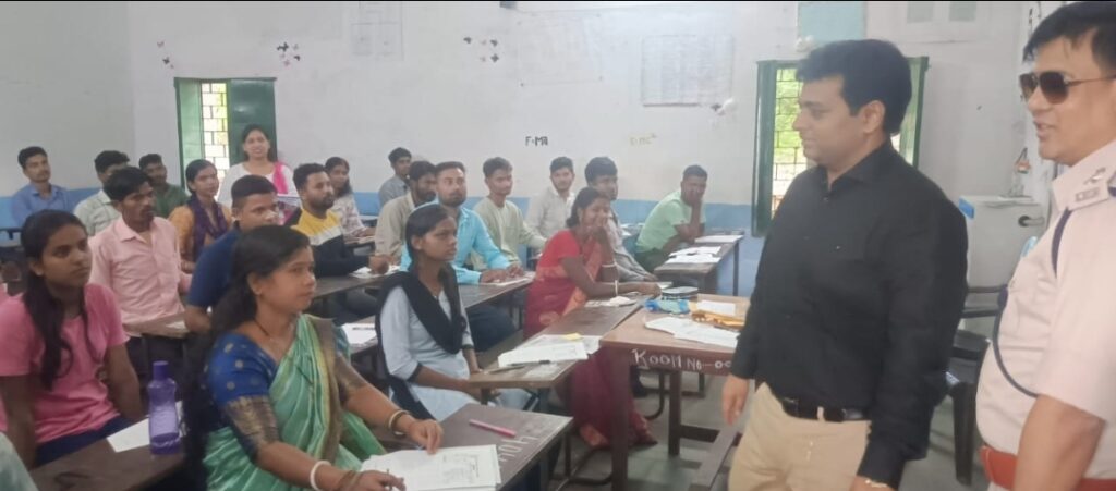 रामगढ़ (झारखंड)। रामगढ़ जिला अंतर्गत चौकीदार बहाली के तहत रविवार को रामगढ़ शहर के अलग-अलग आठ केन्द्रों पर चल रही लिखित परीक्षा को लेकर रविवार को उपायुक्त, रामगढ़ श्री चंदन कुमार ने पुलिस अधीक्षक श्री अजय कुमार के साथ विभिन्न परीक्षा केन्द्रों का निरीक्षण किया।