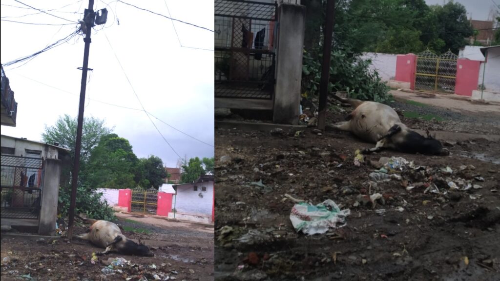 विद्युत विभाग के पोल से रात के समय जब मवेशी को करेंट लगा तो वह मछली कि तरह तडफड़ता रहा