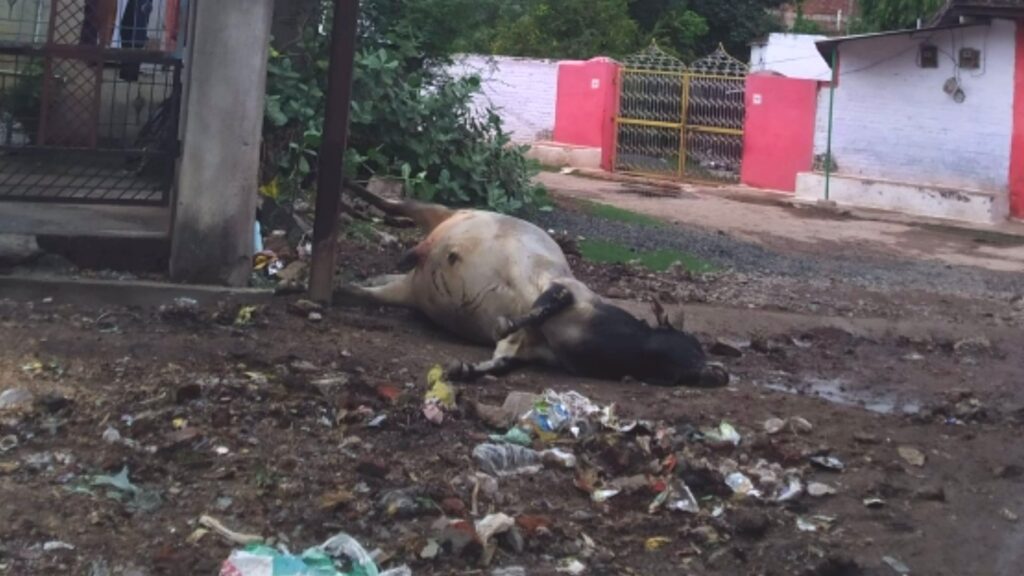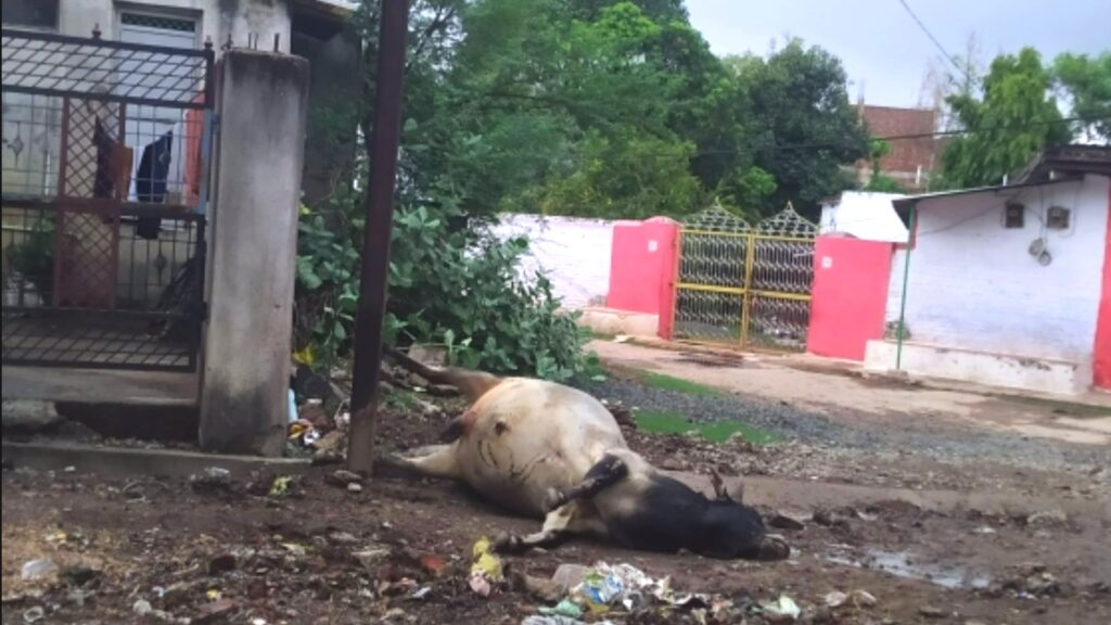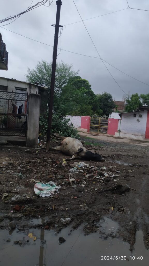 म्रत मवेशी दो दिनों तक मोहल्ले के पास पडा़ रहा