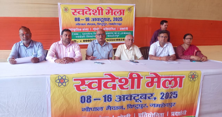 जमशेदपुर (झारखंड)। जमशेदपुर का प्रतिष्ठित स्वदेशी मेला दिनांक 8 से 16 अक्टूबर 2025 तक गोपाल मैदान बिस्टुपुर में आयोजित होने जा रहा है। जिसका विधिवत् उद्घाटन समारोह दिनांक 8 अक्टूबर 2025 को संध्या 5.30 बजे होगा जिसमें बतौर मुख्य अतिथि के रूप में पूर्व मुख्यमंत्री एवं केन्द्रीय मंत्री अर्जुन मुण्डा एवं विशिष्ट अतिथि के रूप में जमशेदपुर पूर्वी से विधायक श्रीमती पूर्णिमा साहू, टाटा स्टील के उपाध्यक्ष कॉर्पोरेट सर्विसेस डी.बी. सुंदरा रामम एवं झारखण्ड क्रिकेट एसोसिएशन के सचिव सौरभ तिवारी होंगे।