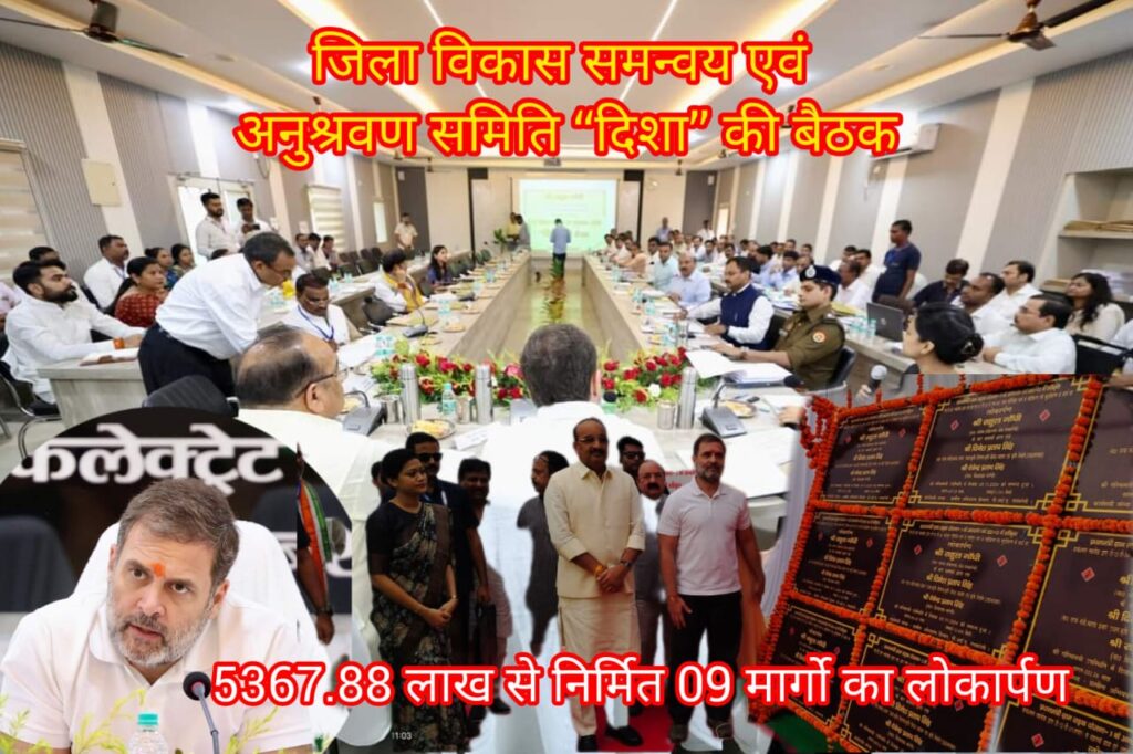 सांसद राहुल गांधी ने कलक्ट्रेट परिसर के बचत भवन प्रांगण में पहुचकर प्रधानमंत्री ग्राम सड़क योजना-3 के अन्तर्गत वर्ष 2021-22 में स्वीकृत एफ0डी0आर0 एवं कन्वेंशनल तकनीक द्वारा विधानसभा सरेनी, हरचन्दपुर व बछरावां की कुल लागत 5367.88 लाख से निर्मित 09 मार्गाे का लोकार्पण किया। जिसकी कुल लम्बाई 70.900 कि0मी है। अध्यक्ष ‘‘दिशा’’ समिति राहुल गांधी एवं संसद सदस्य लोकसभा संसदीय क्षेत्र अमेठी/ सह-अध्यक्ष ‘‘दिशा’’ समिति किशोरी लाल ने बचत भवन सभागार में जिला विकास समन्वय एवं अनुश्रवण समिति ‘‘दिशा’’ की बैठक में हिस्सा लेकर जनप्रतिनिधियों से जिले के विकास से जुड़े सभी बिंदुओं पर विस्तार पूर्वक चर्चा की।