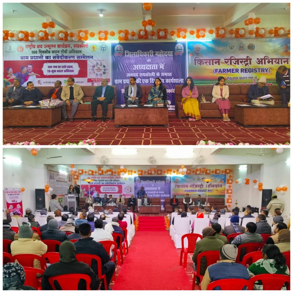 रायबरेली। जिलाधिकारी हर्षिता माथुर ने जनपद के समस्त ग्राम प्रधानों की एक दिवसीय कार्यशाला (राज्य सरकार की महत्वाकांक्षी योजनाओं के संबंध में) का ऑडिटोरियम, सामुदायिक केंद्र, रायबरेली विकास प्राधिकरण, रतापुर में दीप प्रज्वलन कर शुभारंभ किया। कार्यक्रम में राष्ट्रीय क्षय उन्मूलन, 100 दिवसीय सघन टी0वी0 अभियान, किसान रजिस्ट्री अभियान व अन्य का संयुक्त रूप से आयोजन किया गया।