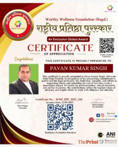 वरिष्ठ अधिवक्ता पवन कुमार सिंह को मिला राष्ट्रीय प्रतिष्ठा पुरस्कार