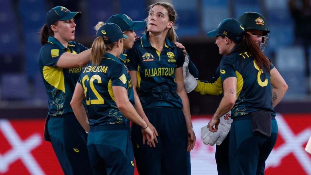 ऑस्ट्रेलियाई टीम सेमीफाइनल में साउथ अफ्रीका की कसी गेंदबाजी के सामने धीमी शुरूआत के बाद पांच विकेट पर 134 रन ही बना सकी। ऑस्ट्रेलिया के लिए विकेटकीपर बल्लेबाज बेथ मूनी ने सबसे ज्यादा 44 रन बनाए। कप्तान तहलिया मैकग्रा ने 27 रन का योगदान दिया। अंत में एलिस पैरी की 23 गेंद में 31 रन और फोबे लिचफील्ड की नौ गेंद में नाबाद 16 रन की पारी से ऑस्ट्रेलयाई टीम इस स्कोर तक पहुंचने में सफल रही। इसके जवाब में साउथ अफ्रीका ने शानदार आगाज किया। कप्तान लौरा वोलवार्ड ने पारी का आगाज करते हुए 42 रनों की पारी खेली। इसके बाद ऐनी बॉश ने 48 गेंदों पर नाबाद 74 रन की पारी खेल अपनी टीम को जीत दिलाई। उन्होंने अपनी पारी में 8 चौके और एक छक्का जड़ा।
