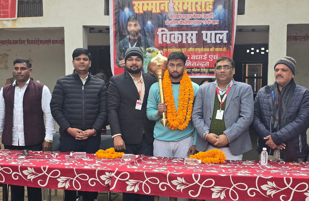 सिधौना । श्री रामकरन इंटरमीडिएट कॉलेज, ईशोपुर के विद्यालय परिसर में यूनियन बैंक ऑफ इंडिया, गाजीपुर पश्चिम द्वारा विद्यार्थियों के हित में वॉटर फ़िल्टर व वॉटर कूलर प्रदान किया गया।इस कार्यक्रम के मुख्य अतिथि आशीष मिश्रा रहे, जबकि विशिष्ट अतिथि के रूप में रोहित विश्वकर्मा उपस्थित रहे। कार्यक्रम की अध्यक्षता जय सिंह, ईशोपुर द्वारा की गई। अतिथियों ने अपने संबोधन में विद्यार्थियों के स्वास्थ्य, स्वच्छ पेयजल की आवश्यकता तथा शिक्षा के साथ-साथ सामाजिक दायित्वों के महत्व पर प्रकाश डाला।कार्यक्रम के दौरान विद्यालय के मेधावी छात्र विवेक पाल को राष्ट्रीय स्तर की स्कूल कुश्ती प्रतियोगिता में स्वर्ण पदक प्राप्त करने पर अंगवस्त्र एवं प्रशस्ति पत्र देकर सम्मानित किया गया, जिससे अन्य विद्यार्थियों को भी खेल एवं अनुशासन के क्षेत्र में उत्कृष्ट प्रदर्शन हेतु प्रेरणा मिली।साथ ही, विद्यालय में अध्ययनरत छोटे बच्चों के लिए स्वच्छ एवं शीतल पेयजल की सुविधा सुनिश्चित करते हुए वॉटर फ़िल्टर एवं वॉटर कूलर का लोकार्पण किया गया। इसके अतिरिक्त, कक्षा 6 से 12 तक की बालिकाओं के लिए आयोजित विभिन्न प्रतियोगिताओं के उपरांत पुरस्कार वितरण कर उन्हें प्रोत्साहित किया गया, जिससे बालिका सशक्तिकरण एवं आत्मविश्वास को बल मिला।