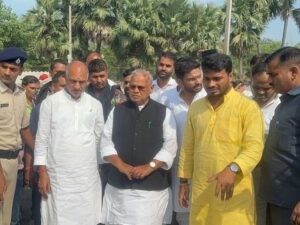 पीड़ितों से मिलने पहुंचे केंद्रीय मंत्री जीतन राम मांझी।